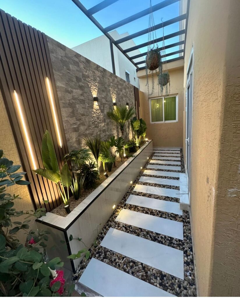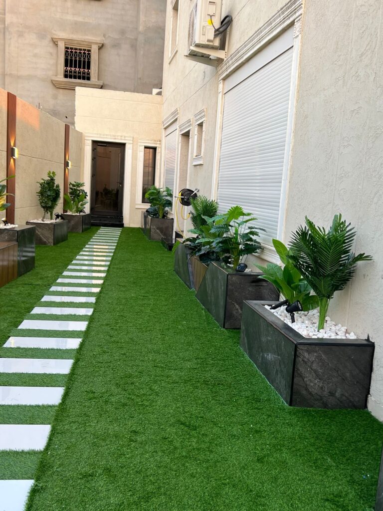 📌 يتم اختيار النباتات المناسبة من حيث الحجم واللون وتنسيقها بأسلوب جمالي.